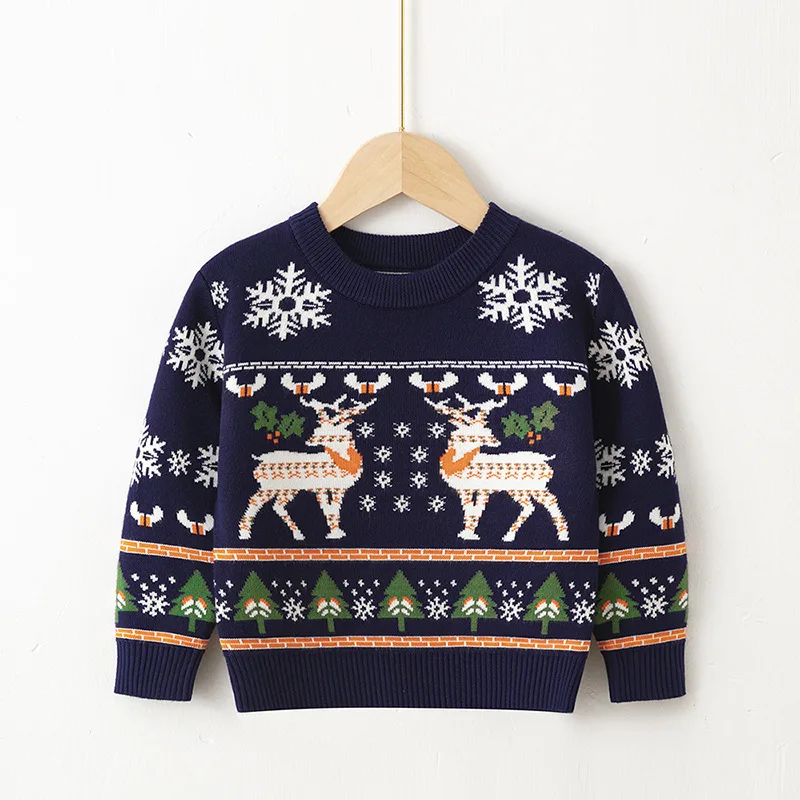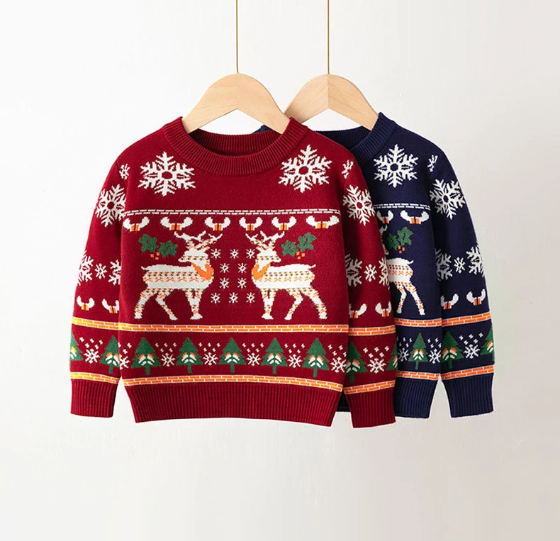 Christmas Children's Knit Clothes Kid Cotton Warm Long Sleeve Pullover Baby Knitted Christmas Sweater